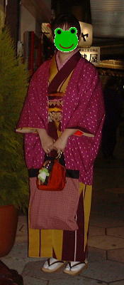 やこどんだけは、かえるの以前からのお友達ですが(でもやっぱりネットで知り合ったけろよ。たまたまおうちが近所だったけろ〜)、他の皆さんとは今回、「着物でどっかに遊びに行きたいね〜」とネットで知り合い集まったわけなので、「新しく入りにくい」ってことも無いですよ〜。新規ご参加、大歓迎ですけろ。 「着物が好きっ」という同士、お友達になれたら楽しいけろ。一緒に遊びましょう。次回1月に予定している、「人形町喰い倒れツアー」も待ち遠しいです。気軽にMLにも参加して下さいけろね〜。 |