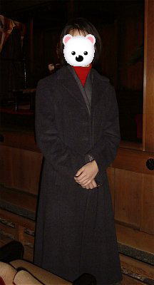 かえるもまったくの普段着けろ。奥様が「能楽堂は、服装制限ありませんから、気楽でいいのですよ」と言って下さったので、おうちにいたままコートを羽織って出掛けてしまいました。タビックスだし。(笑) このところずっと、おうちにいる時、ちょこっとの外出時、タビックスを愛用しています。だって暖かいんだも〜ん。能楽堂は昔の建物なので、足元がかなり冷えました。皆さんも寒い時期、足元は暖かくして行って下さいね。 |