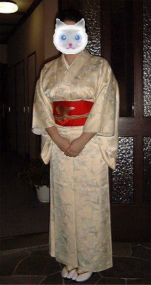 | お仕事帰りということで、今回は洋服姿でご参加下さったちよかさん。講座にいらした皆さんも、やはり平日の夜ということで、皆さんほとんどの方がお仕事帰りのご様子。通勤スタイルの方が多かったですね。ジーパンにトレーナーという方もいらしたし、着て行くものに悩む必要はありませんよ〜。 次回はぜひ、お着物姿、拝見させて下さいけろ〜。 |