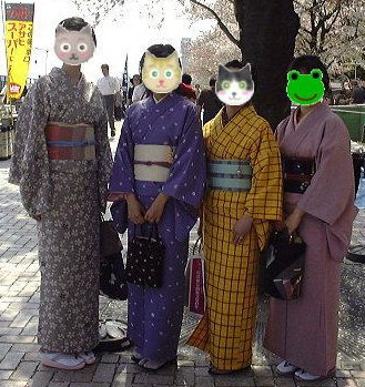 やこどんだけは、かえるの以前からのお友達ですが(でもやっぱりネットで知り合ったけろよ。たまたまおうちが近所だったけろ〜)、他の皆さんとは今回、「着物でどっかに遊びに行きたいね〜」とネットで知り合い集まったわけなので、「新しく入りにくい」ってことも無いですよ〜。新規ご参加、大歓迎ですけろ。 「着物が好きっ」という同士、お友達になれたら楽しいけろ。一緒に遊びましょう。気軽にMLにも参加して下さいけろね〜。 |