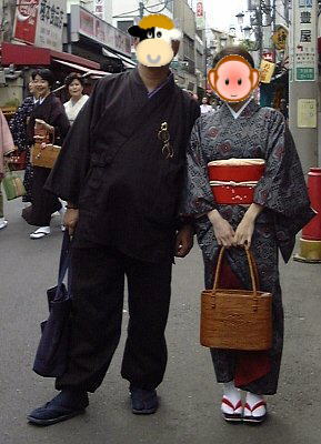 | 今回はセンセ引率による、「お笑い喰い倒れツアー」けろ〜。(笑)総勢13名という、とても賑やかな集まりになりました。待ち合わせのためのセンセからのお知らせ、おもしろいので載せておきますけろ。 ★待ち合わせ場所:東急目黒線「不動前」駅 ★時間:午前11時 [注意事項] ・おやつは、1000円以内。果物は含まない。飲み物は自由。 ・家に帰るまでが遠足です。気を抜かないように。 ・知らない人に声をかけられてもついて行ってはいけない。 ・電車の中では騒がない。 ・集合場所はきちんと確認する。 ・お寺では大声で笑わない。 ・勝手にお経を唱えない。 ・歩くときは、二列縦隊。並ぶ順序は自由。 ・写真を撮るときにはすぐに集まる。 ・着つけに困ったらママさんに早めに相談する。 ・常にセンセの見える場所に居る。 ・他の団体とケンカはしない。 ・具合が悪くなったら、霧笛楼さんに報告に行く。 ・出されたものは残さない。 ・勧められたものは必ず食べる。 ・暑がりの人は対策を考えてくる。例えば、ステテコを履くとか。 ・見失ったら、背が高い花里さんを探す。 ・合言葉は「若菜?」「かえる」。 かえるは・・・お約束、あんまり守れなかったけろ〜。買い食いいっぱいしちゃったし。(笑)でも、センセには怒られなかったけろよ〜。ちなみにセンセは、ホントに塾の先生なのです。ママさんは着付けの先生。霧笛楼ちゃまは白衣の天使けろ〜。こんなメンバーがいれば、遠足も安心けろよ〜。(笑) |