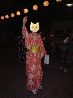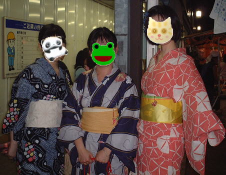 | 今回は、花里隊長引率による、「月島でもんじゃを食べて、佃島で盆踊りを踊ろう!」ツアーでしたけろ。かえるは遅刻してしまい、途中から合流となりました。 早速もんじゃ屋さんにGO!・・・いっぱいあるけろ。(笑)月島は初めて行きましたが、ホントにもんじゃ屋さんがいっ〜ぱい!でも、JUNちゃんが「おいしいお店」を教えて下さっていたので、その「さかもと」に行ってみることに。月島の商店街は、お祭りらしく出店がたくさん出ていてとても賑やかでした。 そしてJUNちゃんお勧めの「明太子・餅・チーズもんじゃ」を注文!そして、やっぱり夏はビールでしょ〜!(でもあっという間に目も顔も真っ赤)夏のもんじゃはやっぱり暑かったけろ!(笑)でも、とってもおいしかったけろ〜。 ハフハフ、もんじゃをいただいていると、大鈴・小鈴コンビが登場〜!甚平姿がかっこいい大鈴さん、お付き合い下さってありがとうございましたけろ〜。 3人で2人前のもんじゃをいただき、「お代わりする?それとももうお腹いっぱい?」という話になりましたが、もちろんかえるは「おかわりするけろ〜!」とリクエスト。(笑)その上、「じゃあ、何にしようか〜?」となって、「もう一回、最初の明太子のヤツ食べたいけろ〜!」とリクエストしたのでありました。お腹いっぱいだった方、ごめんなさいけろ〜。ああ、喰った、喰った!(笑) で、その後、佃島の盆踊り会場に・・・。佃島の盆踊りは、無形文化財に指定されているという、伝統的な盆踊りなのでした。「東京音頭」も「常磐炭坑節」も無い!賑やかなフツー(?!)の盆踊りとは一味違う、遠い昔にタイムスリップしたかのような不思議な空間でしたけろ。 しかし、せっかく盆踊り会場に着いたのに、かえるは帯に挟んであった、おたまじゃくしとはぐれてしまったことに気が付きました。「あわわ、もしかしてさっきもんじゃと一緒に食べてしまったけろか?!」駅でダンナ様と待ち合わせたという若菜(パンダ)会長と、月島の駅までおたまを探しながら戻ったけろ。 もんじゃ屋さんにも戻り、お店の中も探してみたけれど、おたまは結局見つかりませんでしたけろ。トホホ。立派なかえるになって戻って来るけろよ〜! 盆踊りを楽しんだ後、パンダ会長ご夫婦とも合流。みんなでお茶をしてから、サヨナラしましたけろ。お仕事でお疲れなのに、みんなに付き合わせてしまった会長のダンナ様、すみませんでしたけろ〜。こちらも仲良しのステキなご夫婦でしたけろね。ああ、あっちもこっちも「あちち」けろ。(笑) 何年ぶりだったけろかね〜、盆踊り、踊ったの。すご〜く久しぶりだったけろ。一人であの輪の中に入るのは、なかなか恥ずかしいけろですが、みんなで踊れば怖くないけろね〜。とっても楽しかったです。また浴衣でお出かけしましょうね〜。皆さん、ありがとうございましたけろ。 |