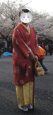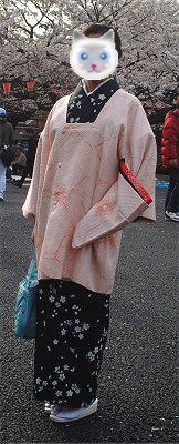 にゃんこさん、キレイな黄色のステキな付下げ(?!)着てらしたけろね〜。道中着もかわいいです。 |