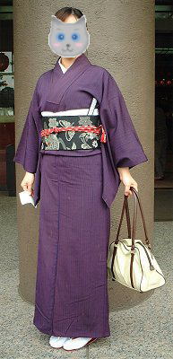 ひまわりちゃん、シックな紬です。大人っぽい雰囲気けろね〜。 |