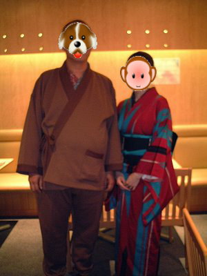 センセと霧笛楼ちゃま。センセの作務衣は、霧笛楼ちゃまの愛がこもったお手製なんですって!すご〜い! |
