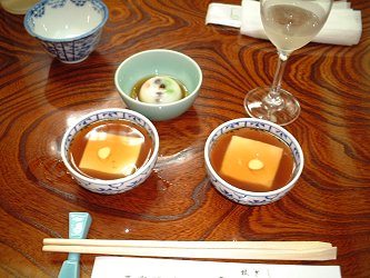 | 笹の雪のお座敷で。豆腐ワインは不思議なお味。 | |