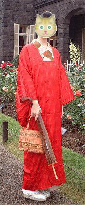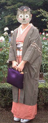 きちおさん、なんとな〜くレトロな雰囲気が漂うコーディネートですね。手作りの羽織紐も、雰囲気に合ってる〜。 |