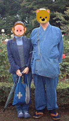 センセと霧笛楼ちゃま。センセはいつもの作務衣姿ですが、霧笛楼ちゃまは残念、雨でお洋服姿でした。でも、ジーパン姿の霧笛楼ちゃまもかわいい! |
