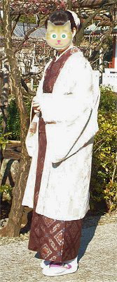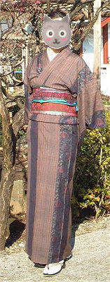 にゃんこさん、長羽織がステキです。柄が白く光って、わかりませんね〜。すみません、一番上の写真をご覧下さいませ。菊の花を図案化したような、ちょっとレトロな雰囲気の色柄です。大島紬かな?お着物も、いいお色ですね〜。 |