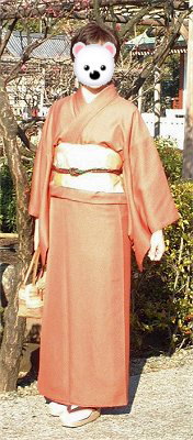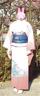 初参加のモモウサギさん。やさしいピンク色の付下げをお召しです。上の方は淡いピンクで、裾の方に行くにしたがってお色が濃くなっています。やさしそうなモモウサギさんに、よくお似合いでしたけろ。襟巻きや手袋もかわいかったです! |