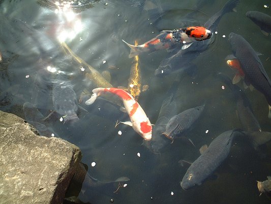 | 今年のお花見は、八芳園に決定!キレイでしたね〜。当日は、午前11時半に現地集合。まずは空いているうちに、スラッシュカフェでランチをいただくことにしました。それでもお庭の桜が良く見える、テラスの席はもういっぱい。 かえるは桜ランチというコースをいただきました。お味の方は・・・う〜ん、ま、こんなもんかなぁ〜ってところでしょうか。(笑)いつもはランチコースが1800円ですが、桜の時期は2500円。700円は桜代けろか?! 初参加の方もいらっしゃったので、おしゃべりを楽しみながら、ゆっくりと食事を楽しみました。「さて、そろそろお庭に・・・」と席を立つ頃には、満席の上に、席が空くのを待っている人もいるような人気ぶり。やっぱり桜の時期には、ランチのお客さんも大勢みえるんですね〜。 お庭に出ると、風で花びらがハラハラ・・・。桜吹雪の舞うお庭は、とてもキレイでした。そしてお池の鯉は・・・相変わらずデカかったけろ!(笑)大きなお口をパクパクして、なんかくれ〜!と催促しているようでした。万が一、誤って池に転落でもしたら、寄ってたかって、喰われてしまいそうな迫力です。 池のほとり、桜の木の下・・・と、いろんなところで写真をたくさん撮りました。お天気が良くて、ホントに良かったですね〜。風も無く、暖かくて、お花見にはサイコーでした。 で、お庭を一回りした後、お抹茶をいただきながら、一休みすることにしました。今回は椅子席がいっぱいだったので、畳のお部屋に上がらせてもらうことが出来ました。畳はやっぱり、落ち着きますね〜。ホッ。ただし、しばらくすると足がしびれて来て、それどころではなくなりました。(笑)あ゛〜、正座は苦手けろ〜。 そして「お庭散策にも満足したし、さて、この後はどうする〜?」となりましたが、お天気もいいし、「庭園美術館に行ってみよう!」と言うことに。歩ける距離とのことなので、のんびりテクテク、歩いて行きました。 しかし辿り着いた庭園美術館、休館日でガ〜ン!お庭だけしか観ることが出来ませんでしたけろ〜。う〜、残念!せっかく来たので、お庭だけでも観ることにしました。枝垂れ桜がキレイでしたね〜。で、お庭散策も早々に(?!)、またまたお茶タ〜イム!(笑)庭園美術館内にある、オープンカフェでお茶することにしました。先客で、お着物姿の女性二人連れの方がいらっしゃいましたね〜。やっぱり着物でお花見かなぁ〜。 そろそろ日も暮れるか・・・という時間まで、おしゃべりに花が咲き。みんなで楽しい一時を過ごすことが出来ましたけろ〜。ご一緒して下さった皆さん、ありがとうございました! |